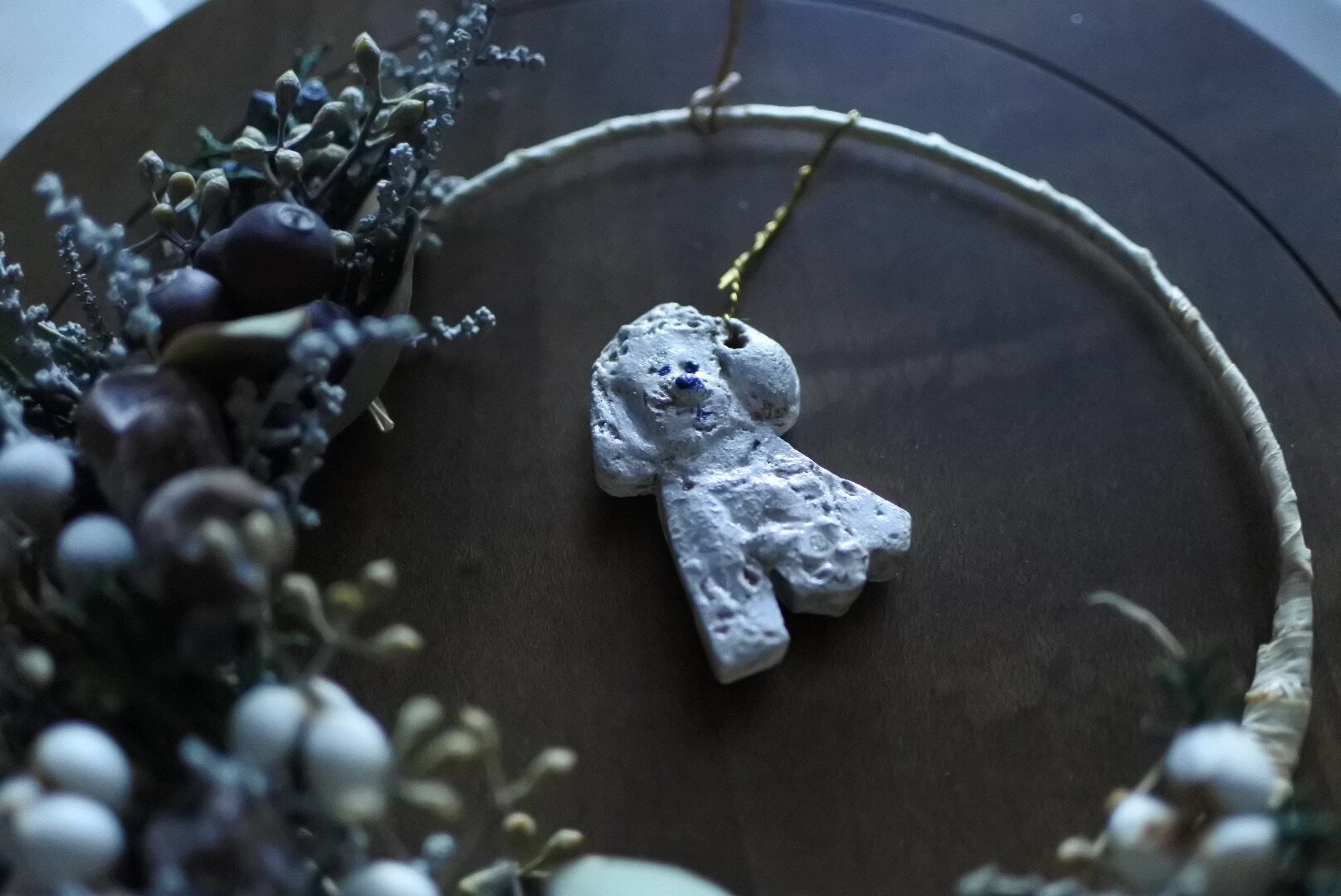 陶土で作ったワンちゃんも一つずつオリジナルで製作しています。