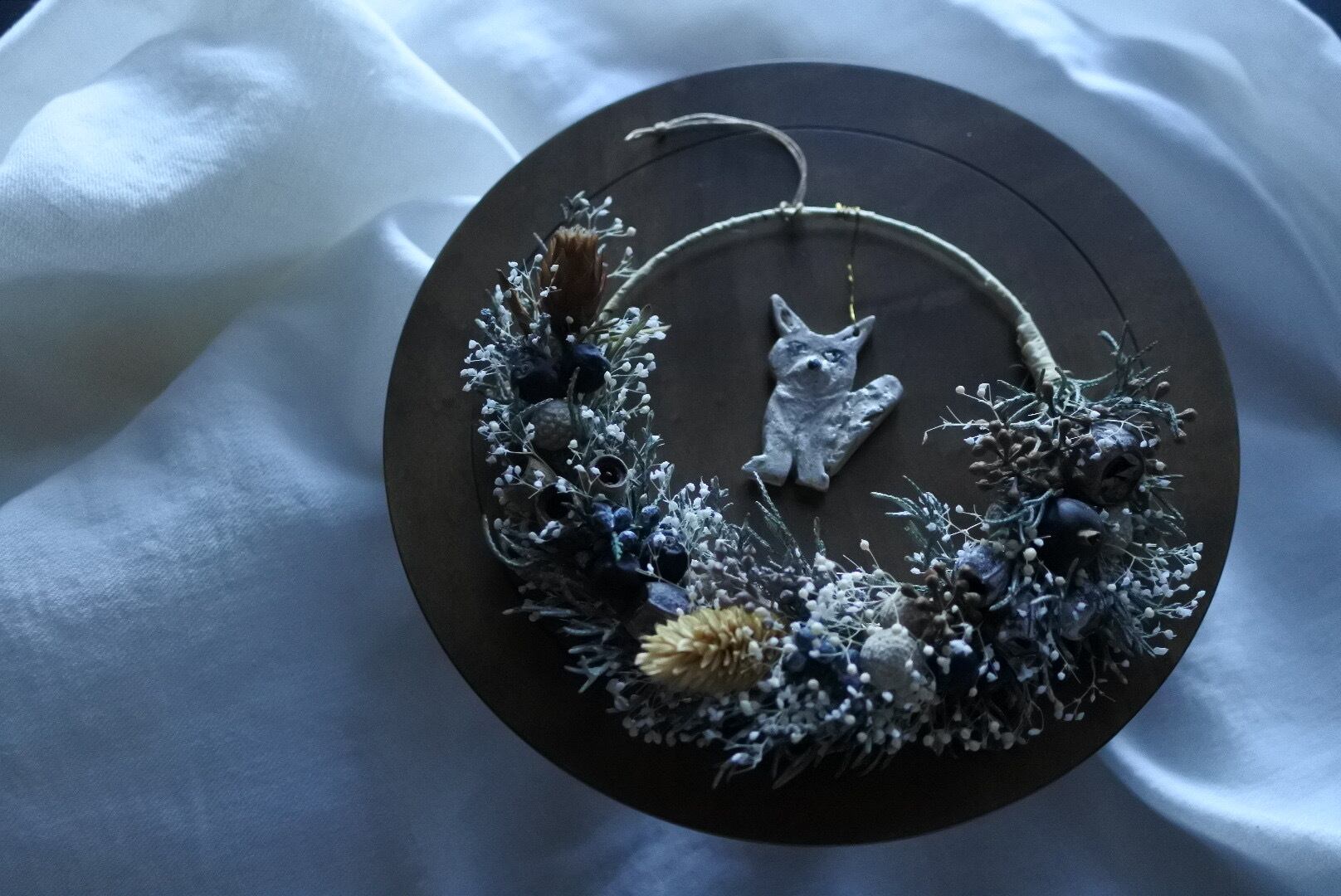 手のひらサイズの半円のリースです。