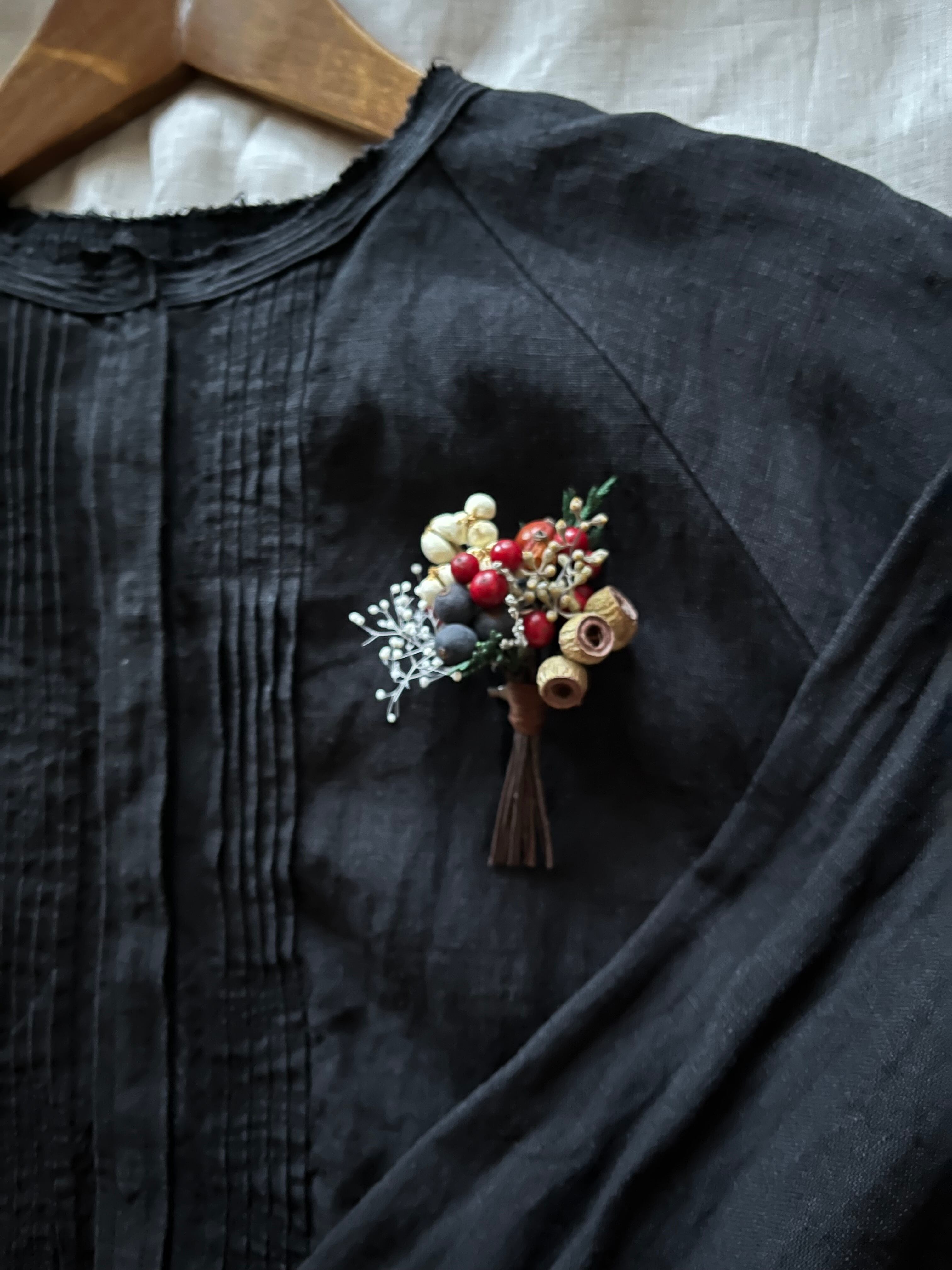 ☆生地の薄いお洋服にはコサージュの重みで生地が痛みやすいので布をかませるのをおすすめします。