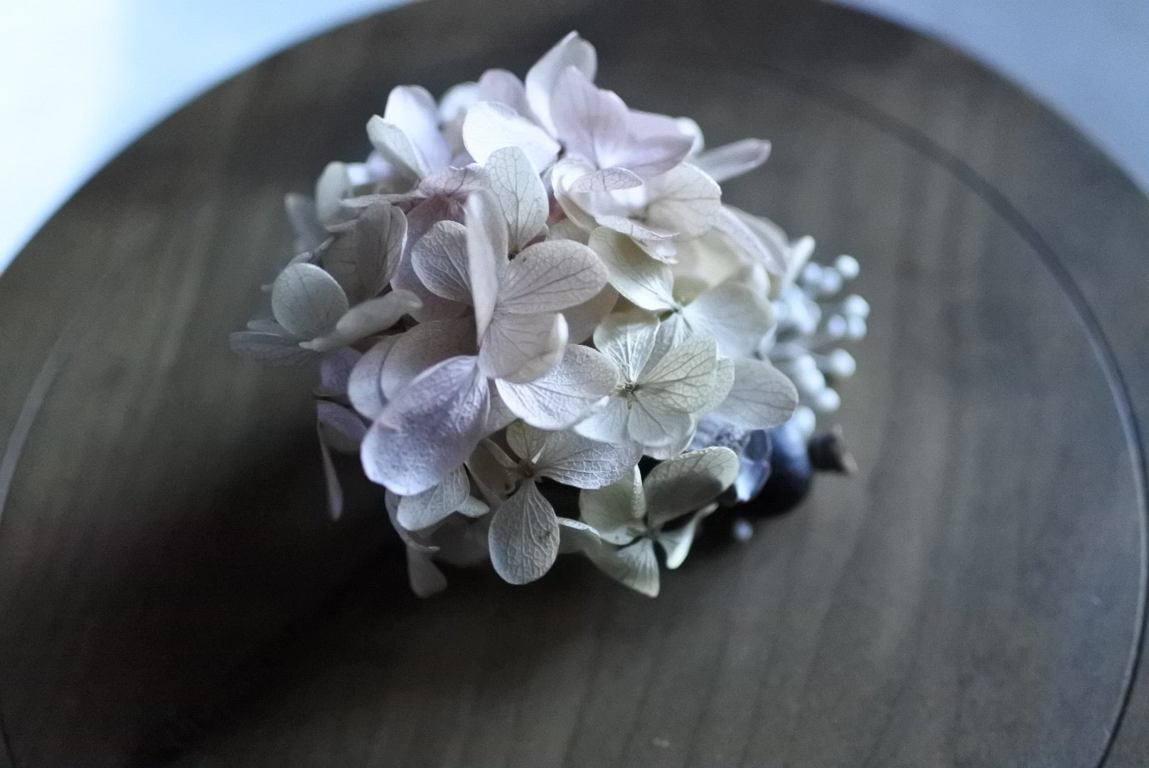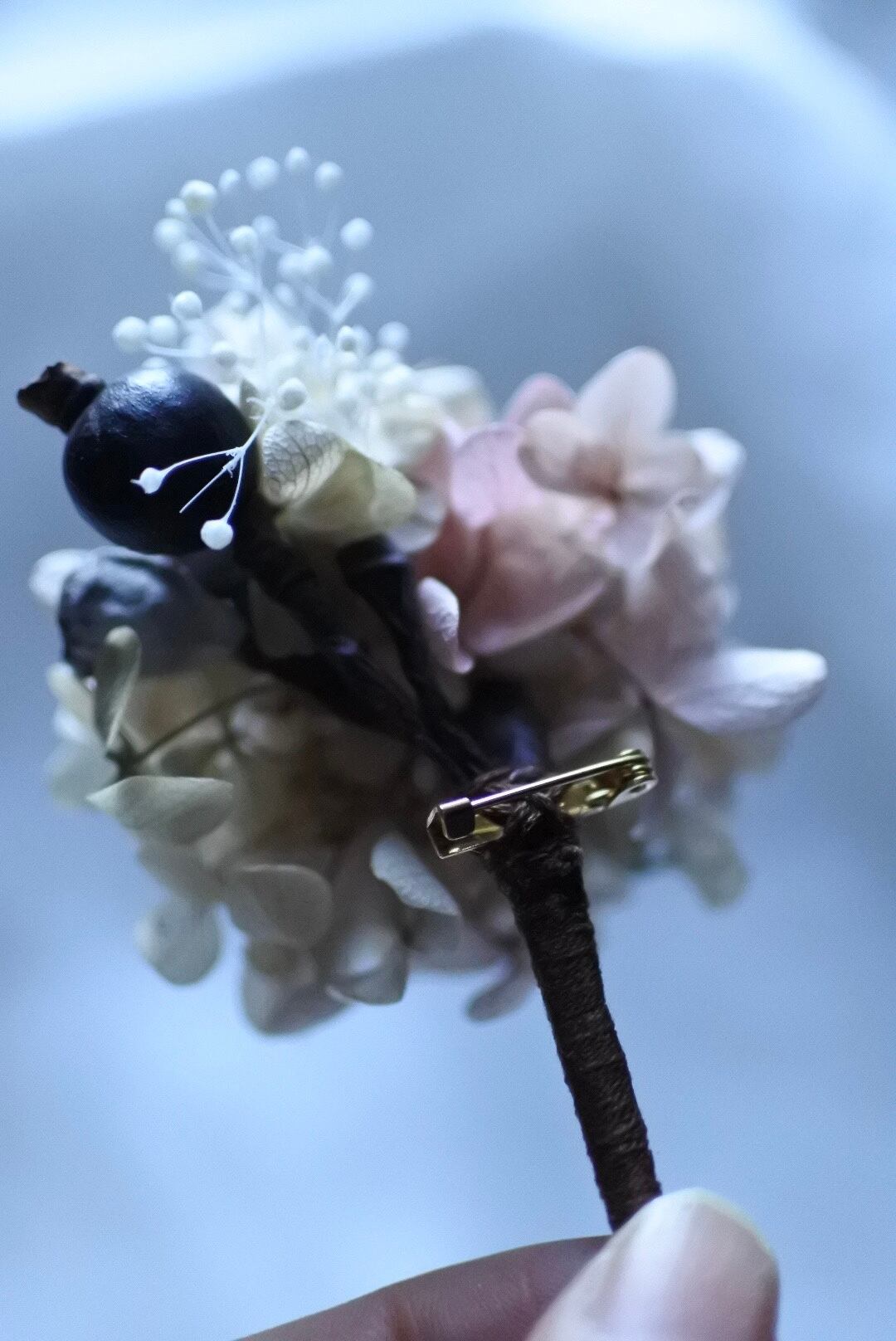 アンティークピンク紫陽花と実物のブーケコサージュ